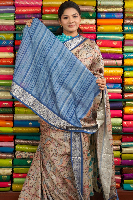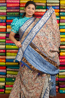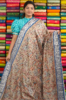 Bagalpuri Silk Kalamkari Design Cream With Blue Saree