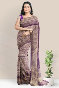Banaras And Gold Weaving Full Jal Design Purple Saree
