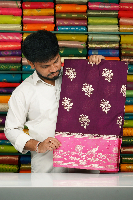 Banarasi Soft Silk Zari Weaving Flower Butti Dark Wine With Pink Saree