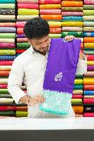 Benaras Pattu Contrast Border Dark Purple With Sea Green Saree