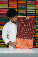 Benarasi Georgette Silver And Gold Zari Butti Dark Maroon With Orange Saree