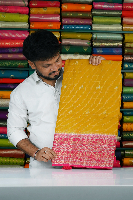 Benarasi Georgette Silver And Gold Zari Butti Dark Mustard Yellow With Pink Saree