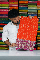 Benarasi Georgette Silver And Gold Zari Butti Dark Orange With Magenta Pink Saree