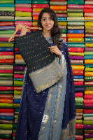 Bentex Silk Gold Zari Lines Black With Grey Saree