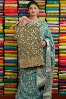 Bentex Silk Printed With Doriya Weaving Dark MehandhiGreen Saree