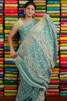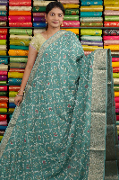 Bentex Silk Printed With Doriya Weaving SeaGreen Saree