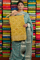 Bentex Silk Printed With Doriya Weaving Yellow Saree