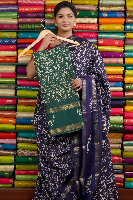 Bentex Silk Zari Lines Floral Design Dark Green Saree