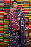 Bentex Silk Zari Lines Floral Design Wine Saree