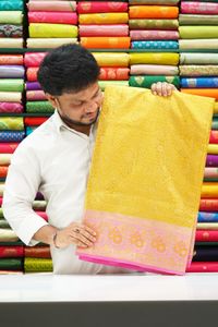 Bridal Pattu Meena Work Border Golden Yellow With Pink Saree