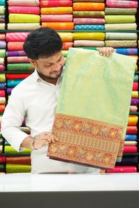 Bridal Pattu Meena Work Border Rama Green With Maroon Saree