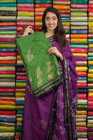 Celico Silk Floral Digital Print Green With Dark Green Saree