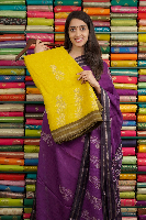 Celico Silk Floral Digital Print Yellow With Mahendhi Green Saree