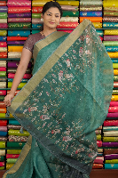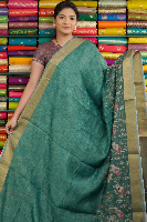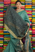 Chaderiya Silk Emboose Weaving Light And Dark Green Saree