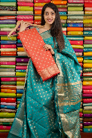 Chapa Silk Gold Zari Butti Orange Saree
