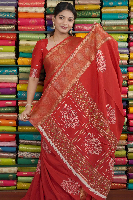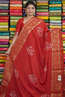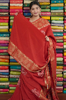 Chiffon Crepe Flower Print With Zari Border Red Saree