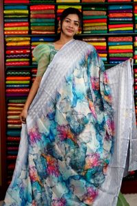 Chiffon Digital Print Blue And Gray Mix Saree