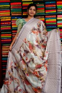 Chiffon Digital Print Light Gray And Lavendra Mix Saree