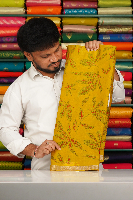 Chiffon Georgette All Over Leaf Digital Print Golden Yellow Saree