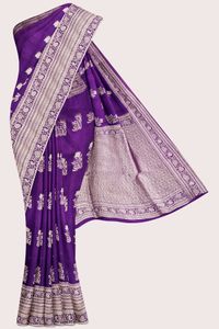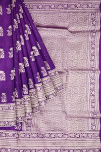Chiffon Georgette And Lotus Gold Zari Weaving Butti Dark Purple Saree