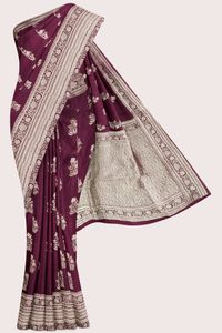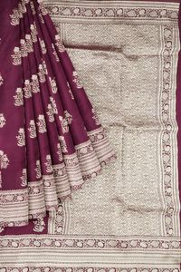 Chiffon Georgette And Lotus Gold Zari Weaving Butti Dark Wine Saree