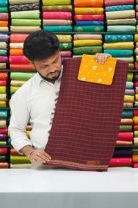 Chiffon Georgette Checks Pattern Maroon And Chocolate Brown Mix With Orange Saree