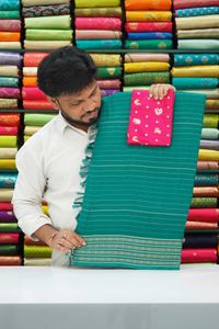 Chiffon Georgette Doriya Weaving Line Rama Green With Pink Saree