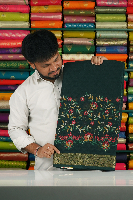 Chiffon Georgette Emboose Floral Digital Print Design Dark Bottle Green Saree