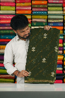 Chiffon Georgette Floral Digital Print Dark Mehandi Green Saree