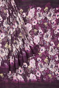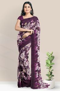 Chiffon Georgette Floral Print Dark Wine Saree