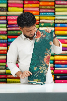 Chiffon Georgette Floral Print Green Saree