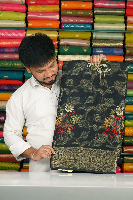 Chiffon Georgette Full Jal Gold Zari Weaving Floral Digital Print Black Saree