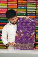 Chiffon Georgette Full Jal Gold Zari Weaving Floral Digital Print Dark Purple Saree