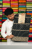 Chiffon Georgette Gold Zari Checks Doriya Weaving Black With Gold Saree
