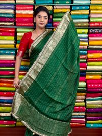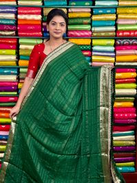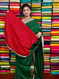 Chiffon Georgette Lace Scallop Border Green And Red Saree