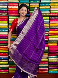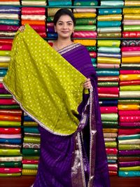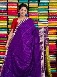 Chiffon Georgette Lace Scallop Border Purple And Parrot Green Saree