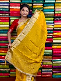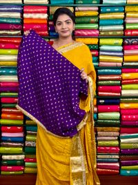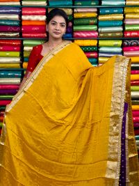 Chiffon Georgette Lace Scallop Border Yellow And Purple Saree