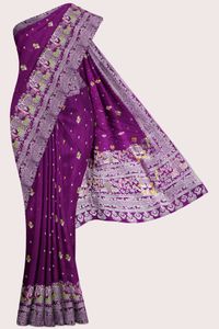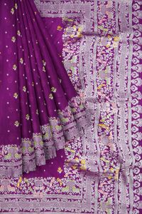 Chiffon Georgette Meenakari Border Dark Megentha Pink Saree