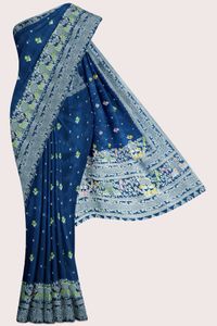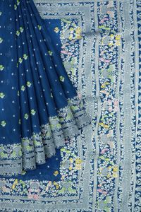Chiffon Georgette Meenakari Border Peacock Blue Saree