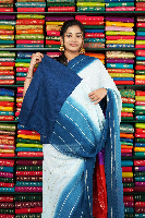 Chiffon Georgette Self Emboss Thread Weaving PeacockBlue Saree