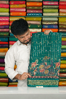 Chiffon Georgette Silver And Gold Zari Checks Flower Butti Green Saree