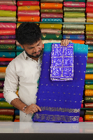 Chiffon Georgette Tie And Die Light Rama Green With Dark Royal Blue Saree