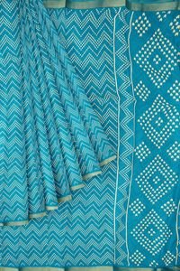 Chiffon Georgette Wave Pattern Copper Sulphate Blue Saree