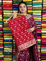 Chiffon Scallop Lace Border And Checks Red With Purple Saree