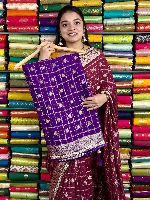 Chiffon Scallop Lace Border Purple And Lemon Green Saree