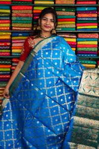 Chiniya Pattu Paithani Border Dark Coppersulphate Blue And Dark Rama Green Saree