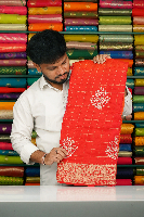 Chinon Silk Check Tie And Die Orange And Red With Pink Saree