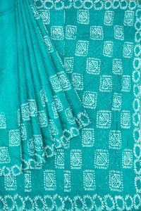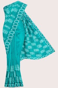 Cotton And Silk Bathik Print Sequence Work Green Saree