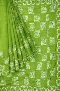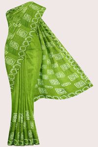 Cotton And Silk Bathik Print Sequence Work Mehandi Green Saree