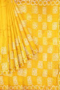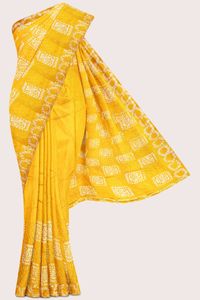 Cotton And Silk Bathik Print Sequence Work Mustard Yellow Saree